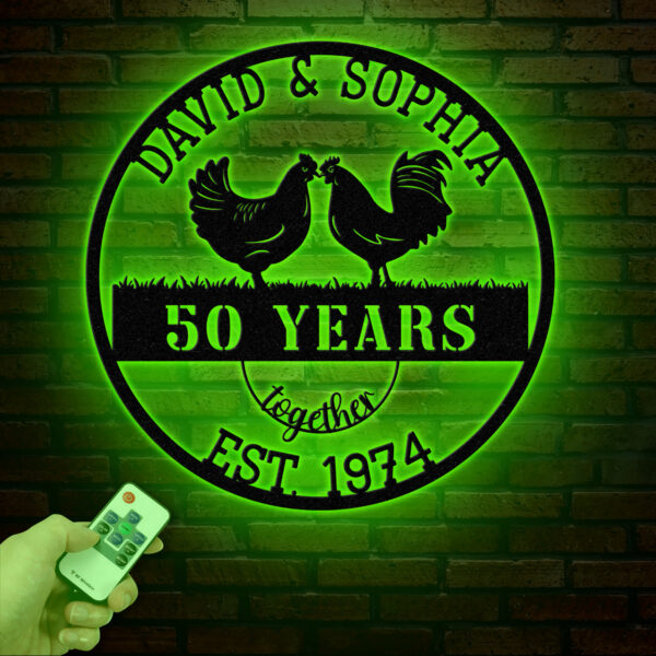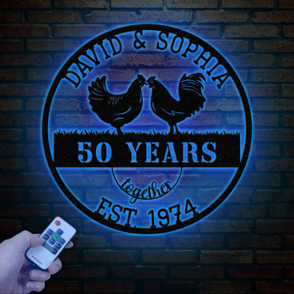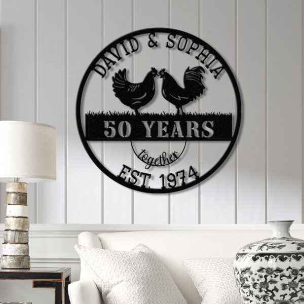 Custom 50 Years Together Anniversary Sign – Personalized Couple Name Sign with Chicken Couple, Perfect Anniversary Gift, Wedding Gift