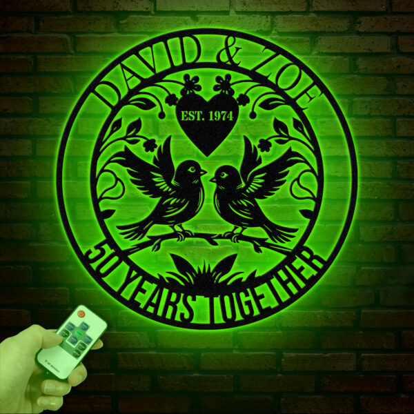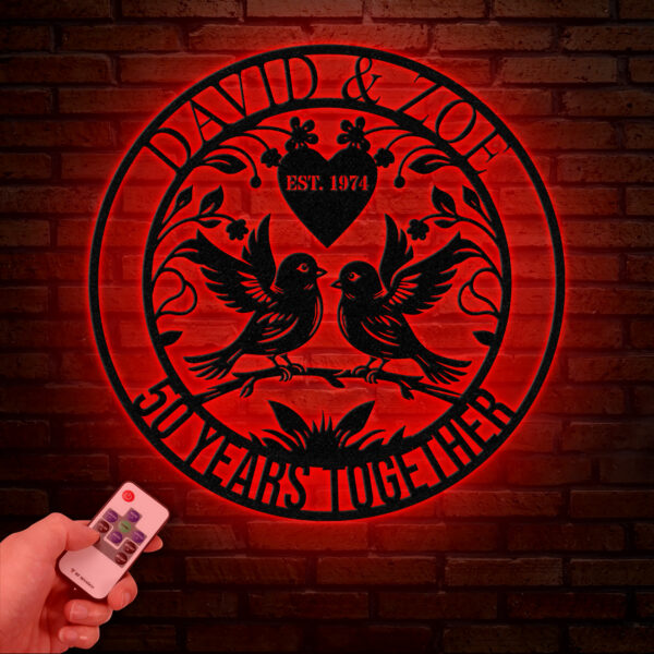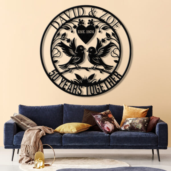 Custom 50 Years Together Anniversary Sign – Personalized Couple Name Sign with Love Birds, Perfect Anniversary Gift, Wedding Gift