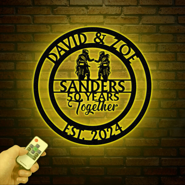 Custom 50 Years Together Biker Couple Metal Sign – Personalized Motorcycle Rider Wall Art – Anniversary or Wedding Gift – Biker Couple Gift
