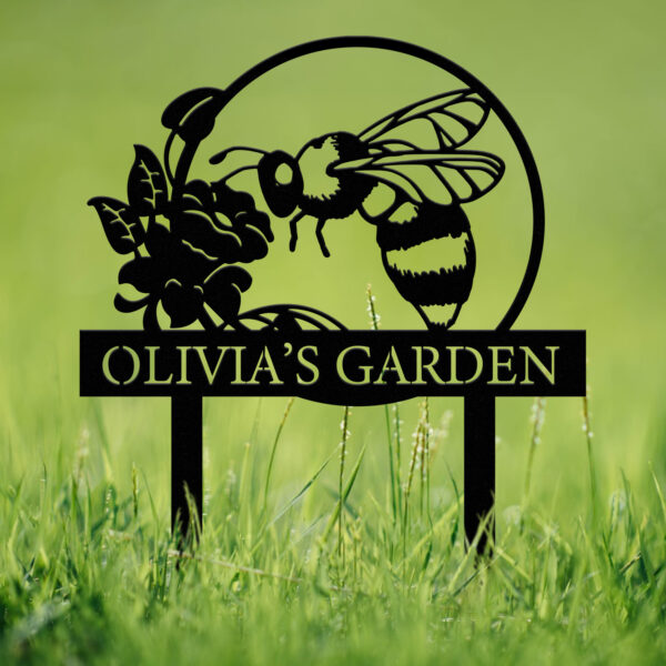 Custom Bee Garden Yard Stake, Metal Garden Sign with Stakes, Garden Bee Metal Sign, Gardening Gifts, Metal Yard Decor, Gardener Decor