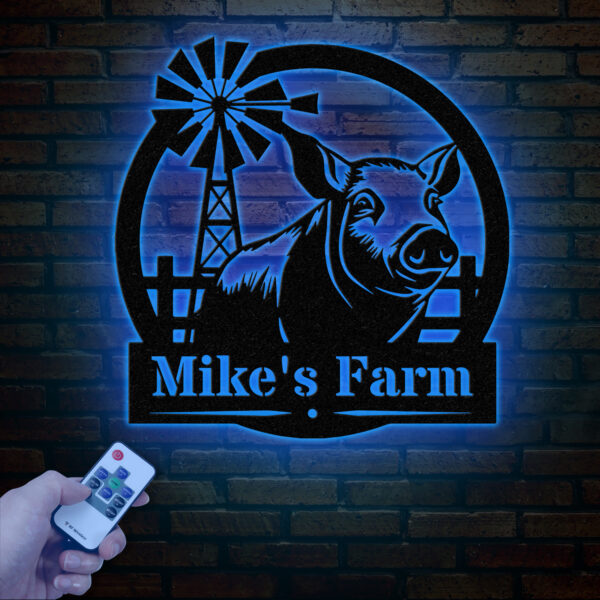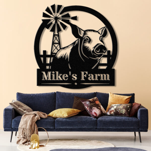Custom Farm Name Metal Sign, Personalized Pig Farm Wall Art, Rustic Farmhouse Decor, Windmill Farm Sign, Outdoor Farm Name Plaque