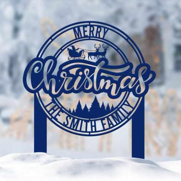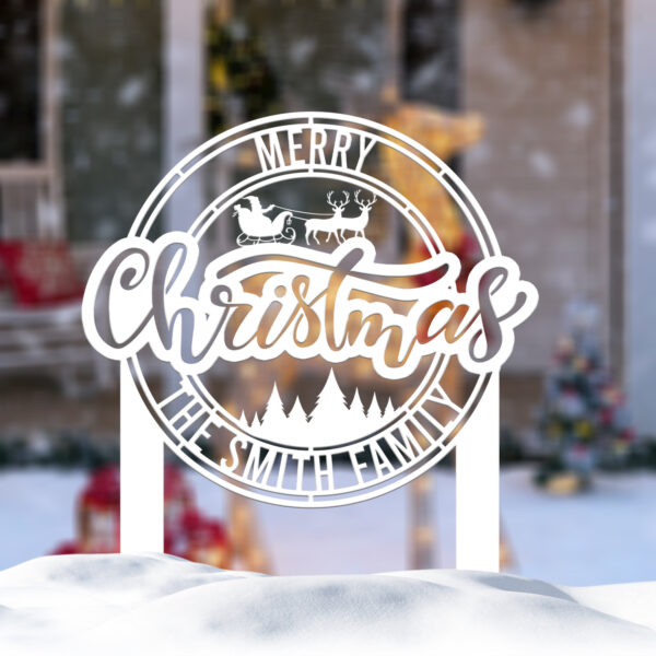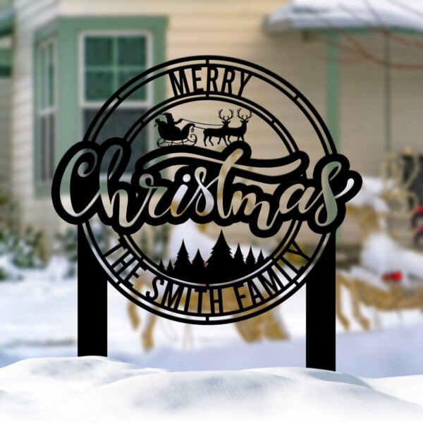 Custom Merry Christmas Metal Yard Stake, Personalized Santa Riding a Sleigh Metal Sign, Family Name Sign, Christmas Decor, Christmas Gifts