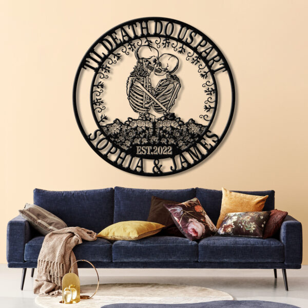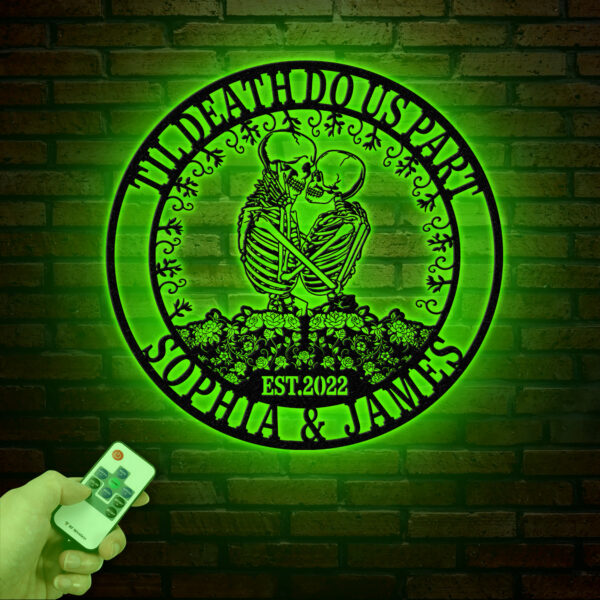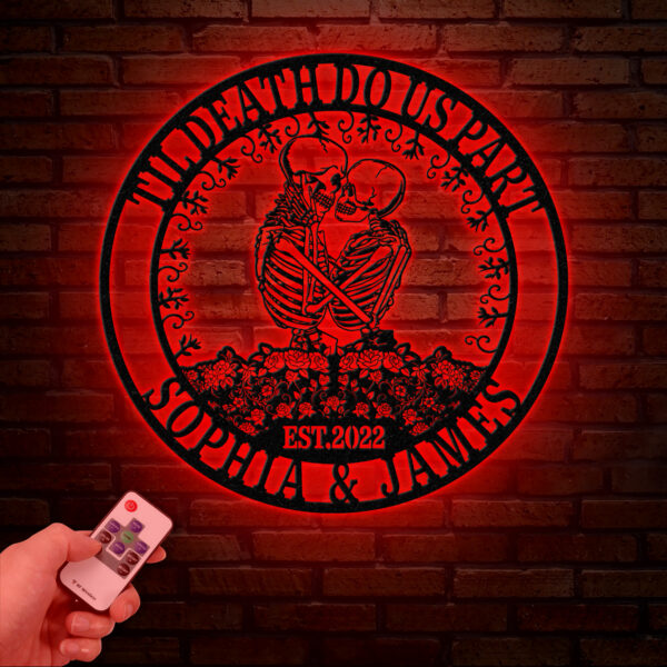 Custom Skeleton Couple Kissing Metal Wall Art with LED Light, Gothic Home Decor, Skull Lover Gift, Halloween or Valentine’s Wedding Gift